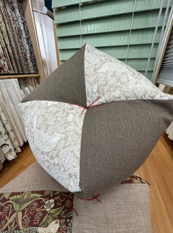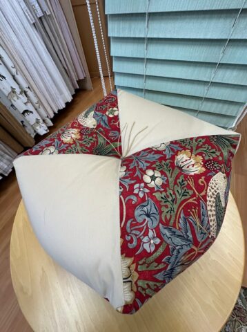 以前、当店ではカーテンとお揃いのクッションをプレゼントしていたことがありました。